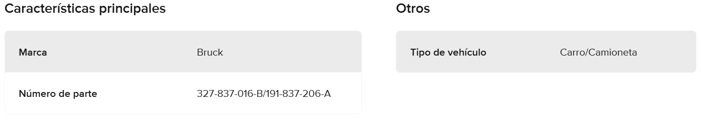 NUMERO DE PARTE: 327-837-016-B/191-837-206-A