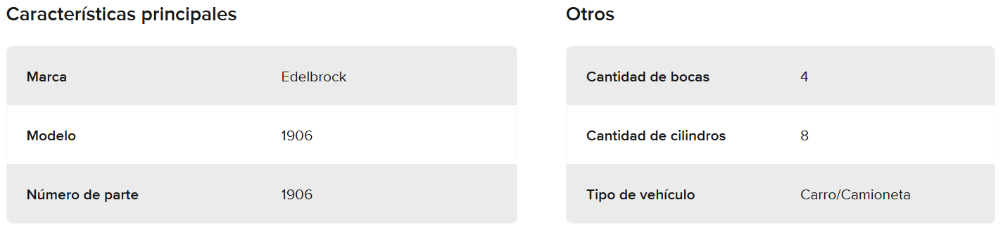 La serie AVS2 es la próxima generación en carburadores Edelbrock. El AVS2 presenta boosters primarios de flujo anular con una nueva calibración para mejorar el rendimiento de ralentí y crucero. El diseño de refuerzo de flujo anular ofrece una mejor atomización de combustible para eliminar las manchas planas que se pueden encontrar cuando el carburador pasa de ralentí a aceleración máxima. Cada booster anular presenta ocho orificios igualmente espaciados para mejorar la dosificación de combustible de ralentí a la principal. La medición de flujo mejorada hace que este carburador sea ideal para su uso con una amplia variedad de motores de bloque pequeño y bloque grande con colectores de admisión de plano único o dual. El AVS2 incluye puertos de vacío con tiempo y lleno para el avance de la ignición. Viene con: Dosificadores de medición - Primary .101, secundarios .098 Metering Rods - .070 x .037 Step-Up Spring - naranja (5 Hg). Use pernos de carb