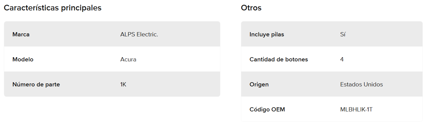 Otros numeros de parte: MLBHLIK-1T, 35113-TL0-A10, 2500A-HLIK1T