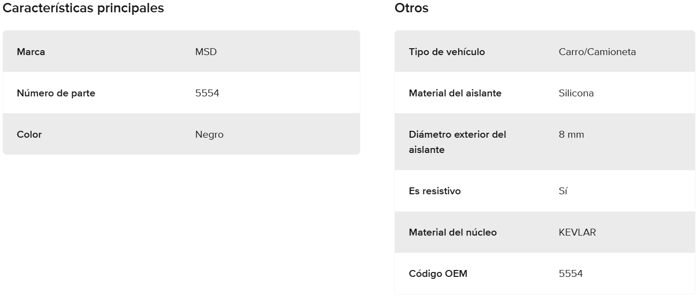 Resistencia de 500 ohmios por pie para mejorar el suministro de chispa y potencia