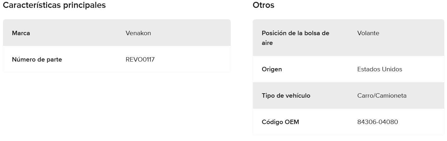Marca: VENAKON Resorte Reloj Pista Carrete Espiral Toyota Aplicaciones - Toyota RAV4 2006-2014 - Toyota Tacoma 2005-2014 - Toyota Tundra 2007-2014 - Toyota Yaris 2011-2014 - Toyota Avalon 2005-2012 - Toyota Camry 2007-2011 - Toyota Corolla 2009-2013 - Toyota Highlander 2008-2013 - Toyota Land Cruiser 2008-2014 - Toyota Matrix 2009-2014 - Toyota Prius 2004-2009 - Scion iQ 2012-2014 - Scion xB 2008-2014 - Scion xD 2008-2014 Numeros de Pieza Originales: - 84306-48030 - 84306-06140 - 84306-0E010 Especificaciones - Material: Plastico inyectado - 2 Arneses con Ficha