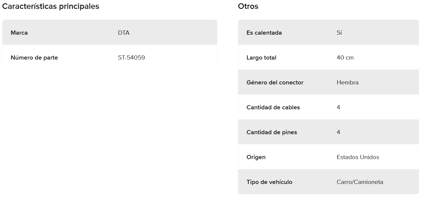 Con un conector hembra y cuatro pines, este sensor es fácil de integrar en el sistema de su automóvil. Su longitud total de 40 cm permite una instalación sencilla, mientras que su diseño robusto asegura durabilidad y resistencia en diversas condiciones de conducción.