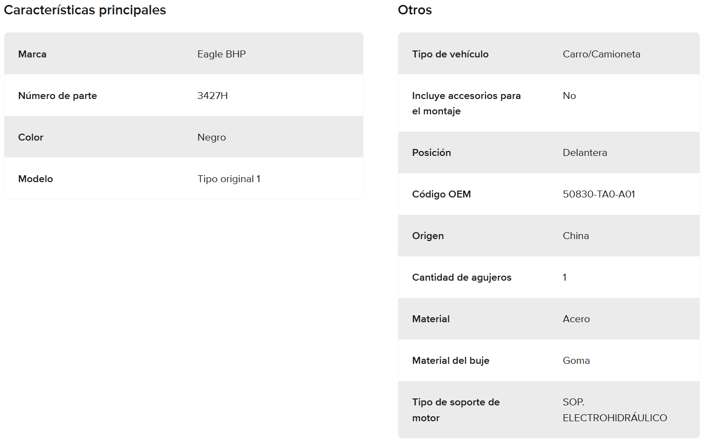 ACURA TLX V6 3.5 2015 - 2020 SOP. MOT. FRONT. SOP. ELECTROHIDRÁULICO
