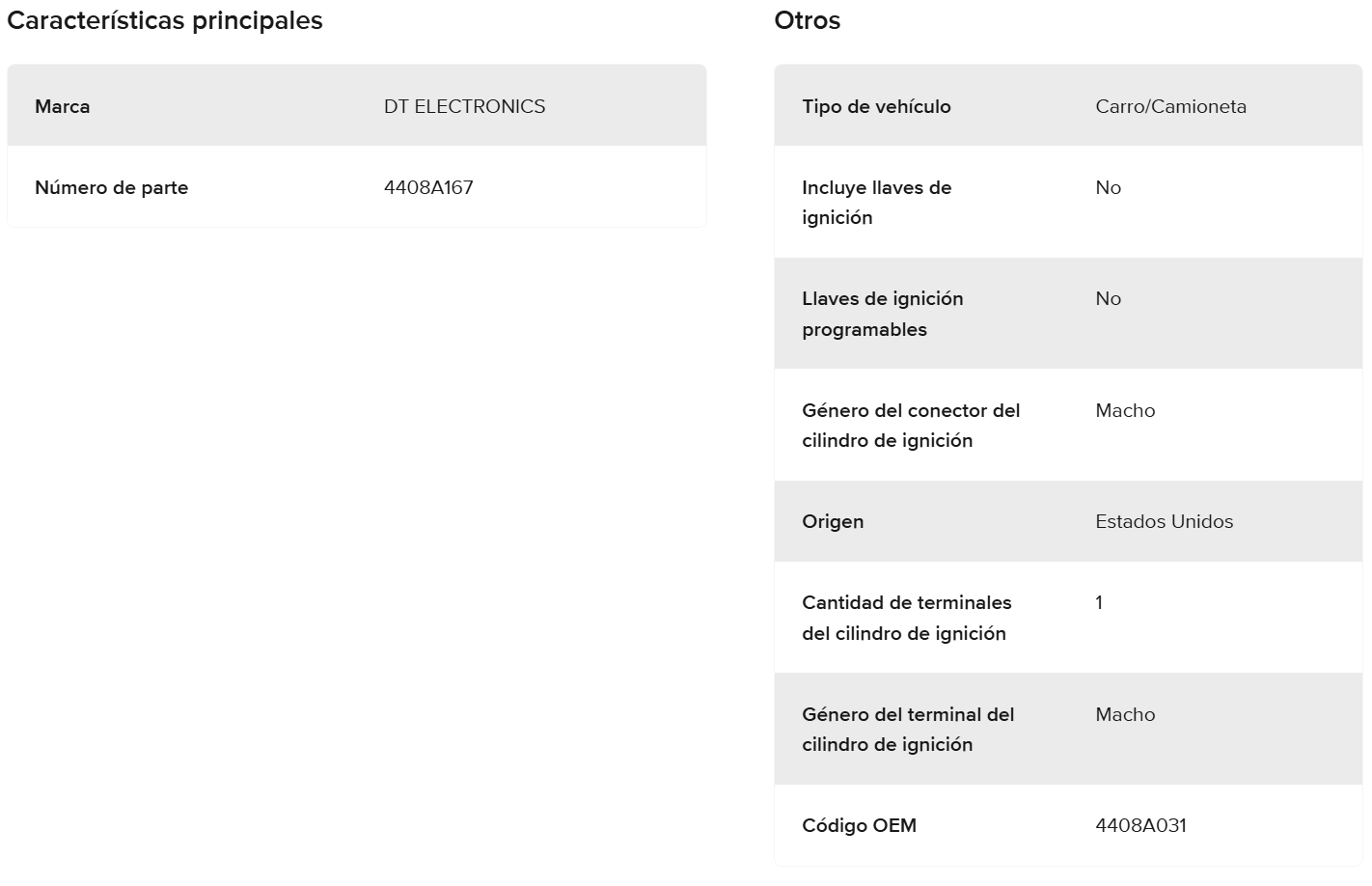 Especificaciones: